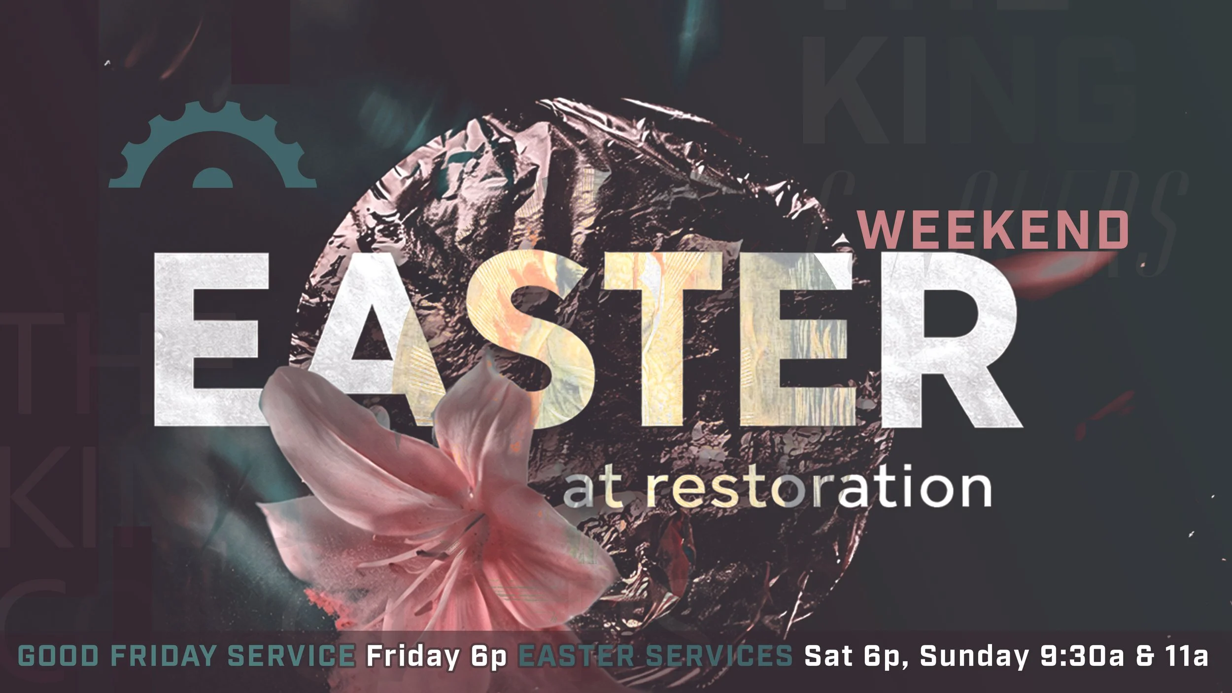 Good Friday Service, April 3rd - 6p Easter Saturday, April 4th - 6p Easter Sunday, April 5th - 930a and 11a